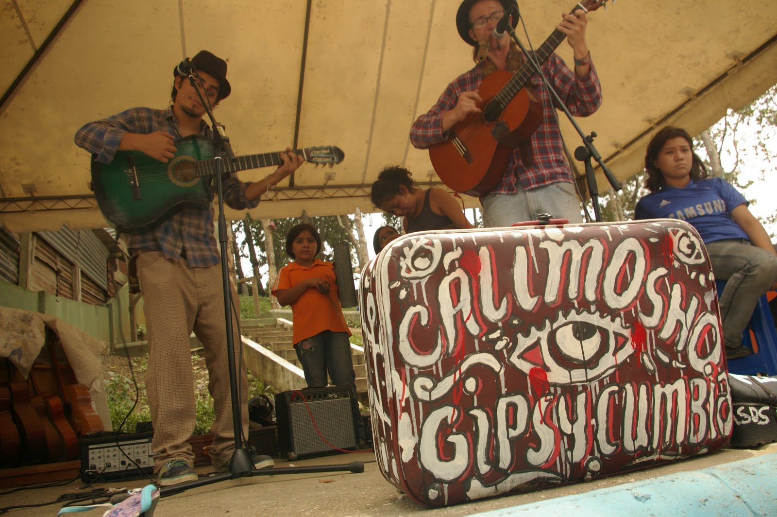 These are pictures from an event that the creative expression department of Safe Passage organized (along with the community involved). We had music, including guest and student performances, fun activities and a community art project/exhibition where we all painted old shoes with messages of peace and community betterment. This is the sign I made to introduce the exhibition. It means "steps toward a peaceful world"